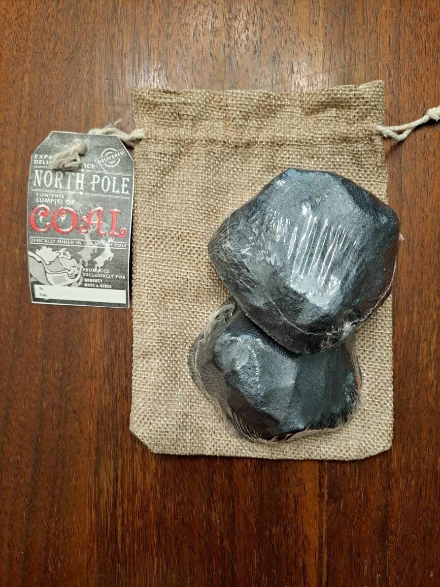 Getting coal for Christmas just got a lot better. Our Lumps of Coal Bath Bombs take a holiday joke and turn it into a soak worth bragging about. Each set includes two shimmering coal bath bombs tucked inside a festive "North Pole Bag of Coal" burlap sack perfect for stocking stuffers, Christmas gag gifts, anyone on the naughty list, or just some lighthearted holiday fun!
